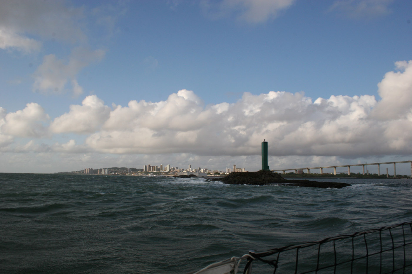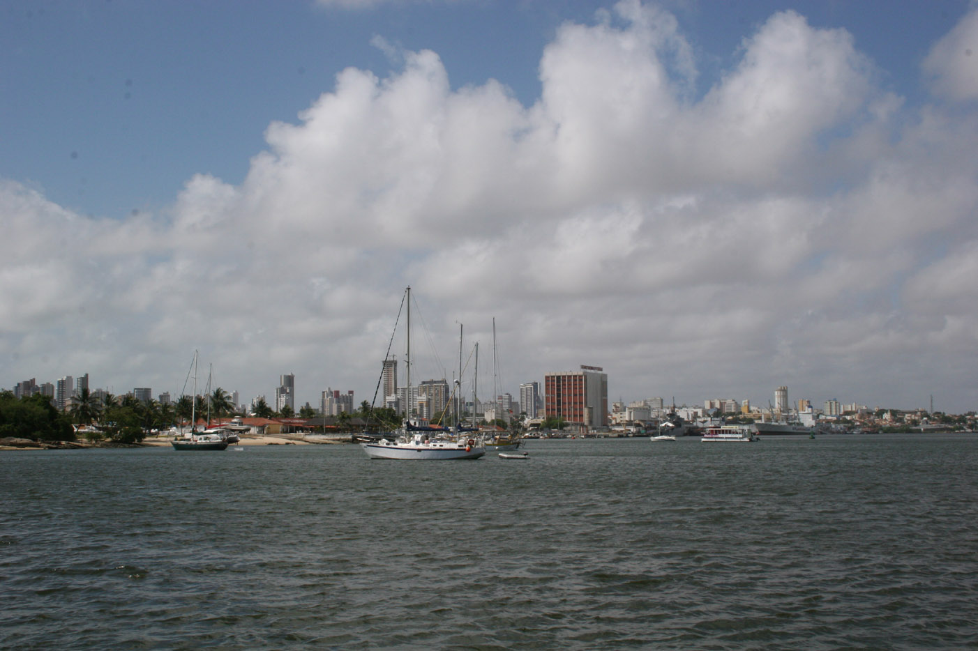The anchorage of the Iate Clube do Natal is not ideal: not much space between shore and shipping channel, poor holding ground, strong current. However, the setting is nice.