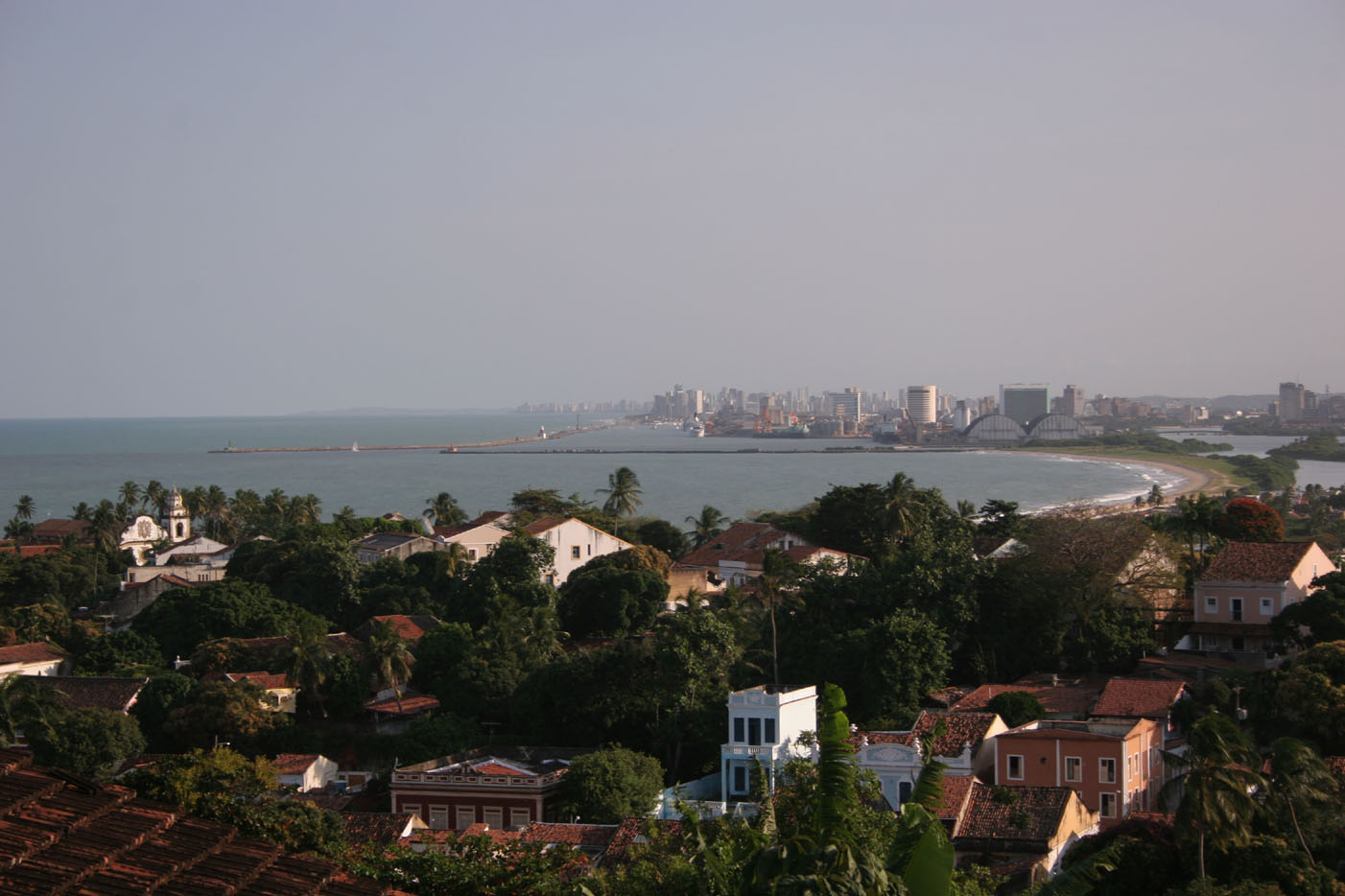 View from Olinda on Recife. You can see the entry to the harbour area. Olinda has some beautiful streets with colorful houses. We particularly liked the Creperie and the ice cream shops. |