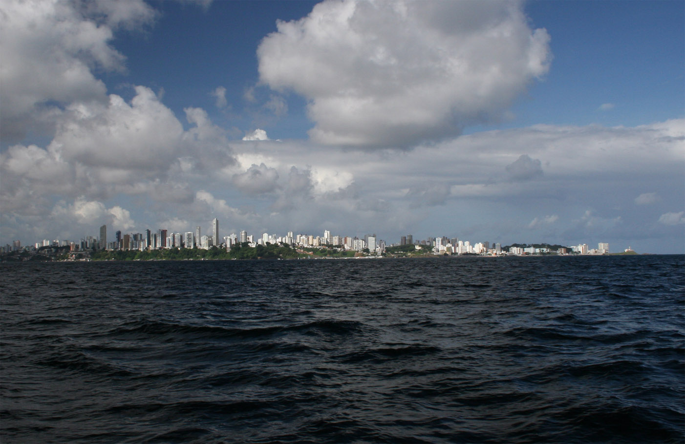 See also our Cruising Notes for the Baía de Todos os Santos. Salvador as seen from the Baia de Todos os Santos. To the right you can see the lighthouse Farol da Barra. |
