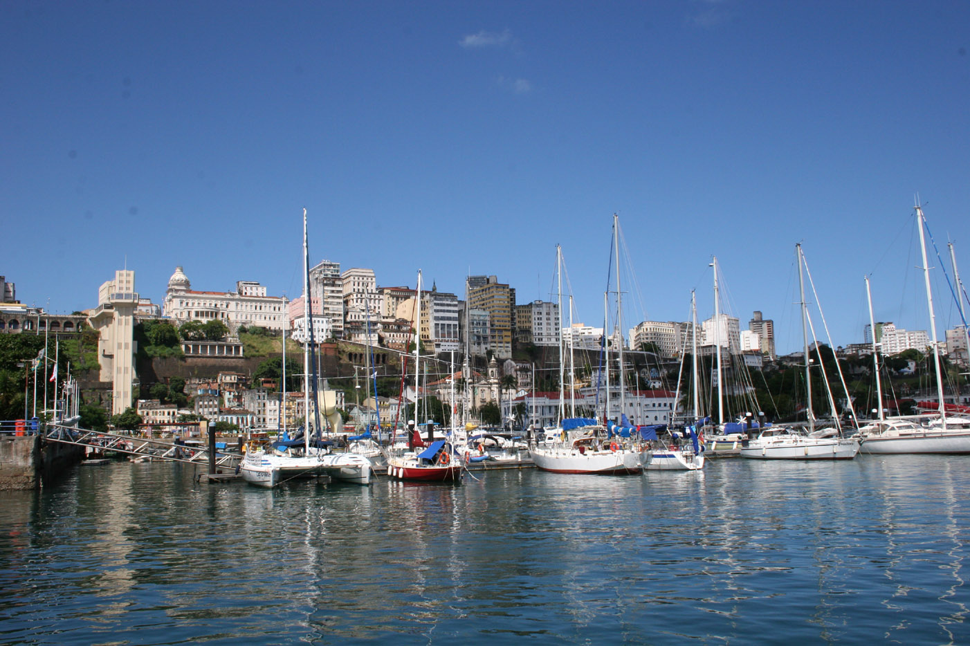 The Centro Nautica de Bahia (CENAB) is located in the Commercio district. The Elevador Lateral in the background to the left transports 60'000 persons per day to the old town Pelourinho. |