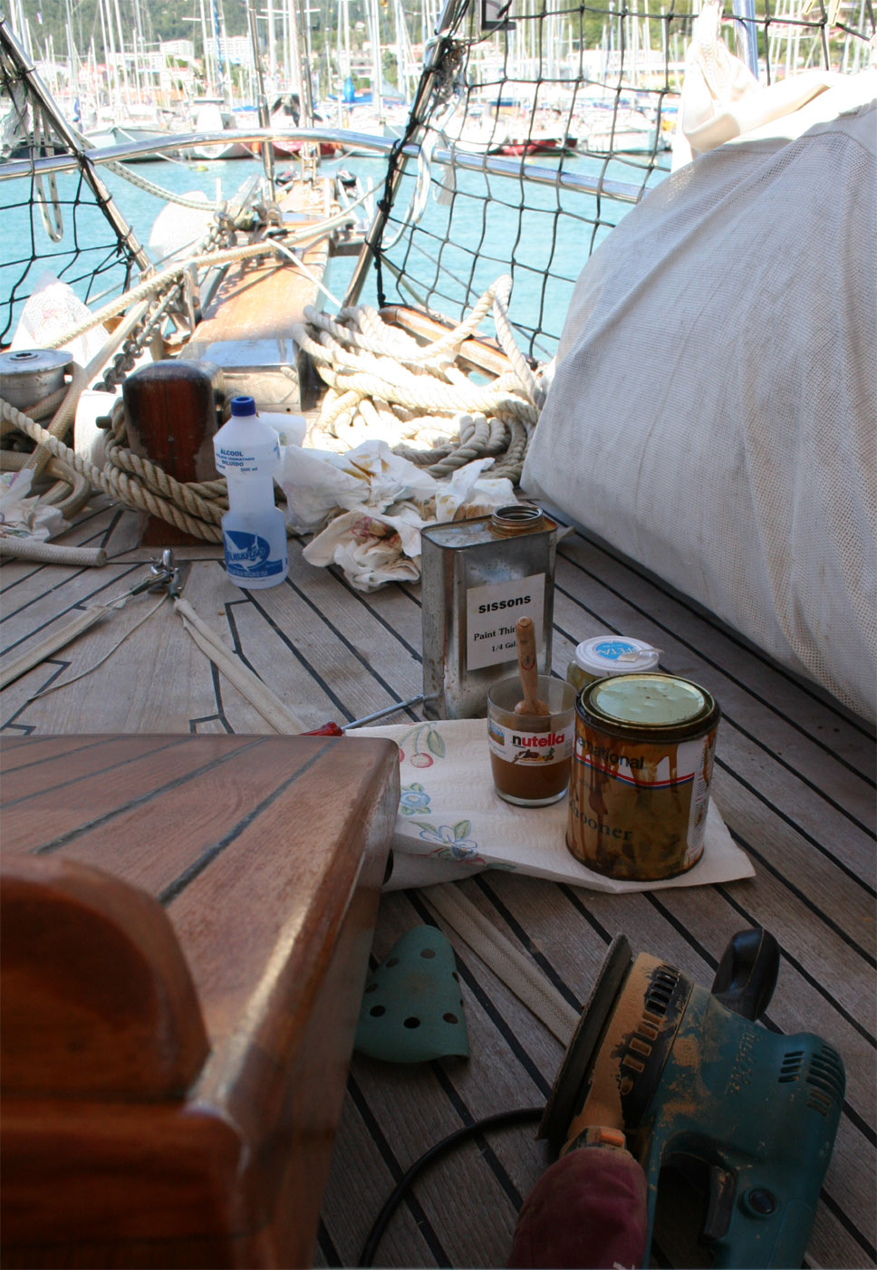 Wood is beautiful - an requires tender care. During our stay in Marina du Marin, we tackle a few jobs we should have done long ago.