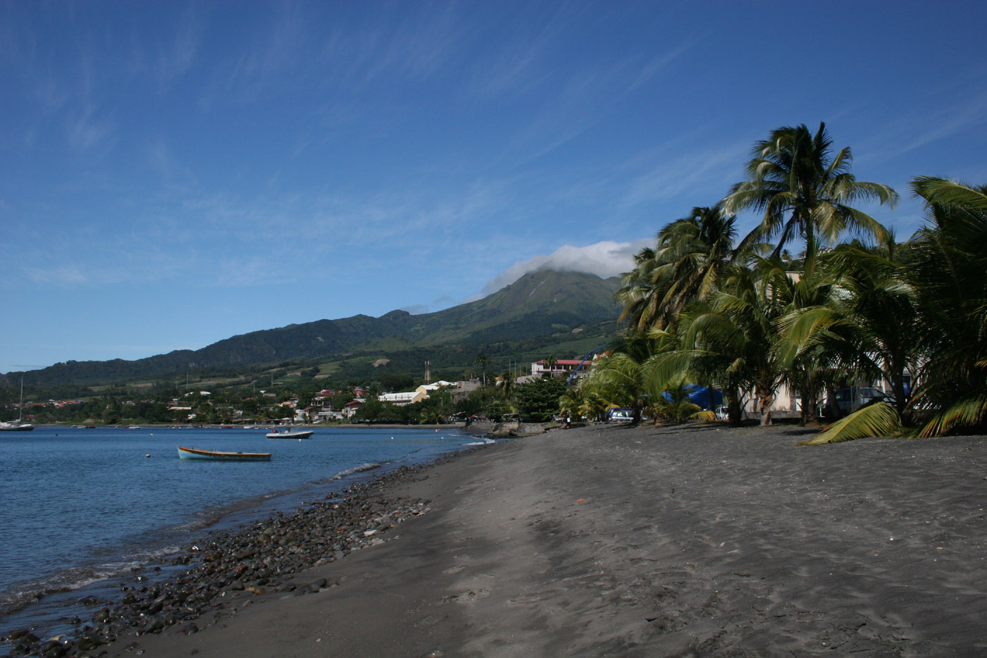 Until the beginning of the 20th century St. Pierre was known as the Paris of the Caribbean. But then, Mount Pélé (in the background) exploded and killed the whole population within minutes. Today, a museum, a few ruins, a dozen wrecks and the black sand on the beach remind the visitor of this eruption.