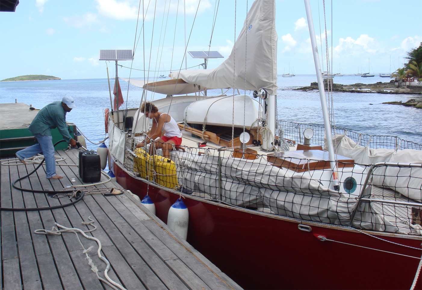 Yachts leaving St. Martin for Europe fill tanks and jerry cans with (tax free) diesel. We loaded up 240 liters of which we had 60 liters left at our arrival in Cascais. In fact, during our Atlantic crossing we accumulated more engine hours than during the previous 12 months. Still, we did approximately 90% of the distance under sail.