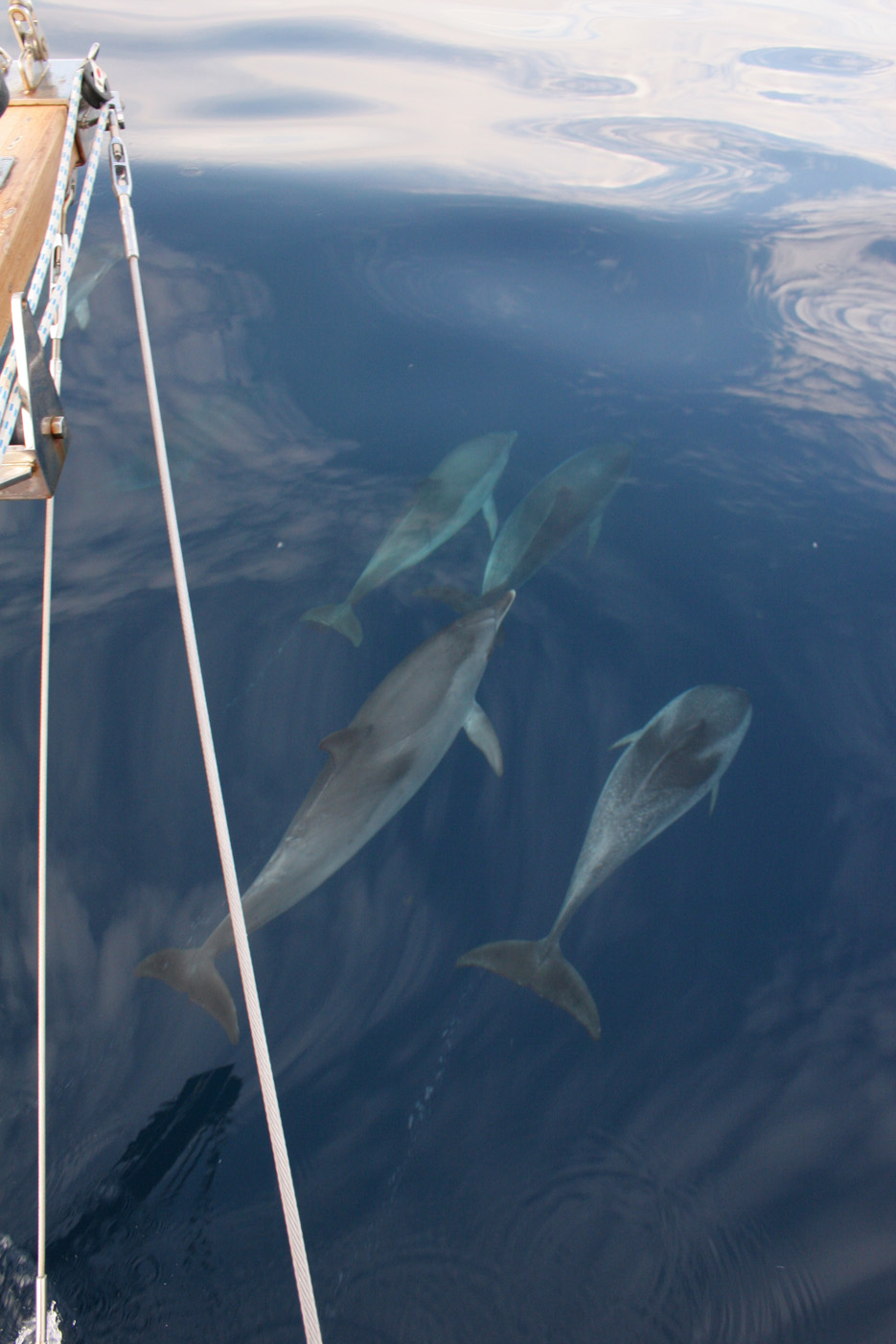 It is always nice to see dolphins at sea. They come close to our boat, jump out of the water or play with Anahita`s bow.