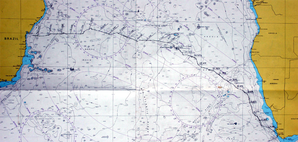 Anahita departed from Cape Town on 13 April 2006 and arrived in Salvador de Bahia on 17 May 2006. On the way, we spent one week on St. Helena island. We had a rough ride on the first leg and lots of light winds on the second one. In total, we covered some 3'700 nautical miles under sail.