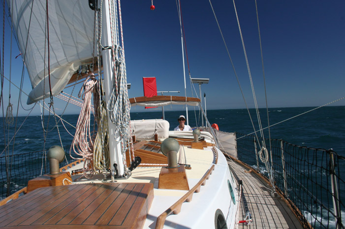The photo we have been waiting for: Anahita on her 70 mile trip from Hout Bay to Saldanha. Perfect sailing conditions, a decent swell, 20 knots of wind from astern. Anahita did the journey with an average of almost 7 knots, reaching 9.4 knots in the surf.