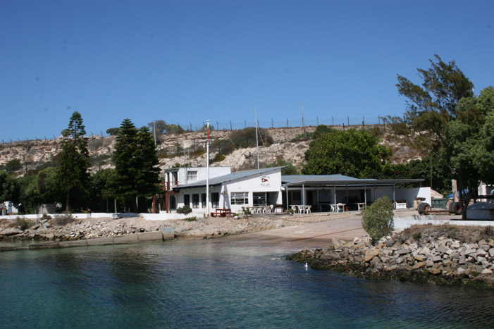 The Club house of the Saldanha Bay Yacht Club. During the week, everything is very quite here. This calm is only interrupted by a few training yachts of the various local sailing schools. On weekends, two dozen members of the club come for a race and a brai (barbecue).