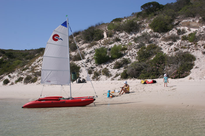 Sometimes we treat ourselves with a visit to Club Mykonos Langebaan. The club is a holiday village in the style of a Greek island. The atmosphere is very relaxed and for a fair price (ZAR 85 [USD 13] per night for a monohull), we are moored to a jetty in a safe harbor, can have a bath with our kids in the heated pool, and have our sundowner beer at the beach bar.